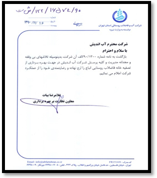تقدیر نامه آب و فاضلاب روستائي استان تهران – روستاي انباج